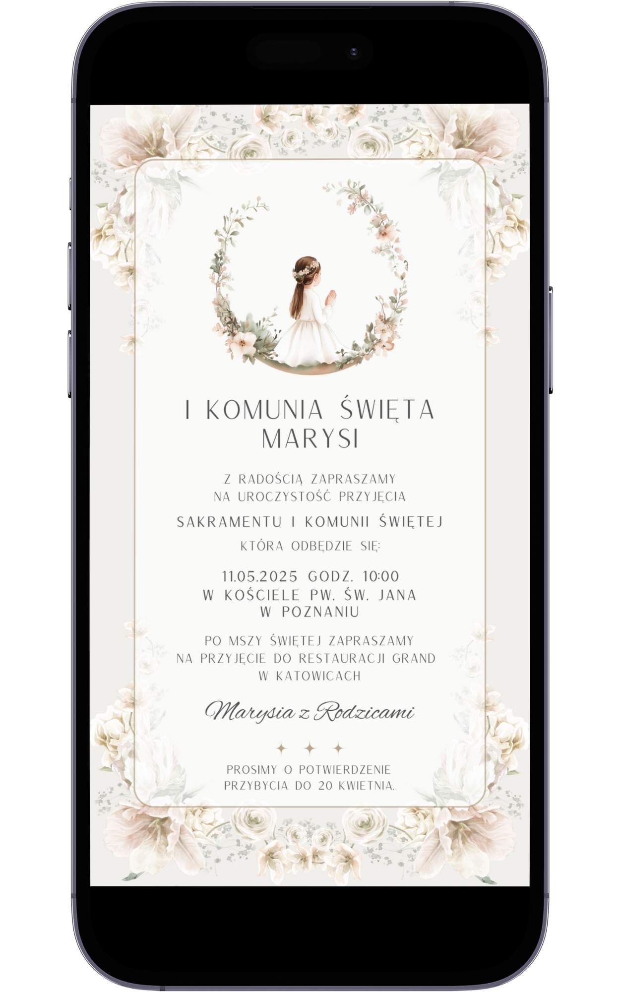 🕊️ Nasze E-Zaproszenie to idealne rozwiązanie dla rodziców, którzy cenią swój czas i szukają eleganckiej formy powiadomienia gości. To produkt cyfrowy, który otrzymasz bezpośrednio na swój e-mail, gotowy do rozesłania jednym kliknięciem przez ulubione komunikatory.