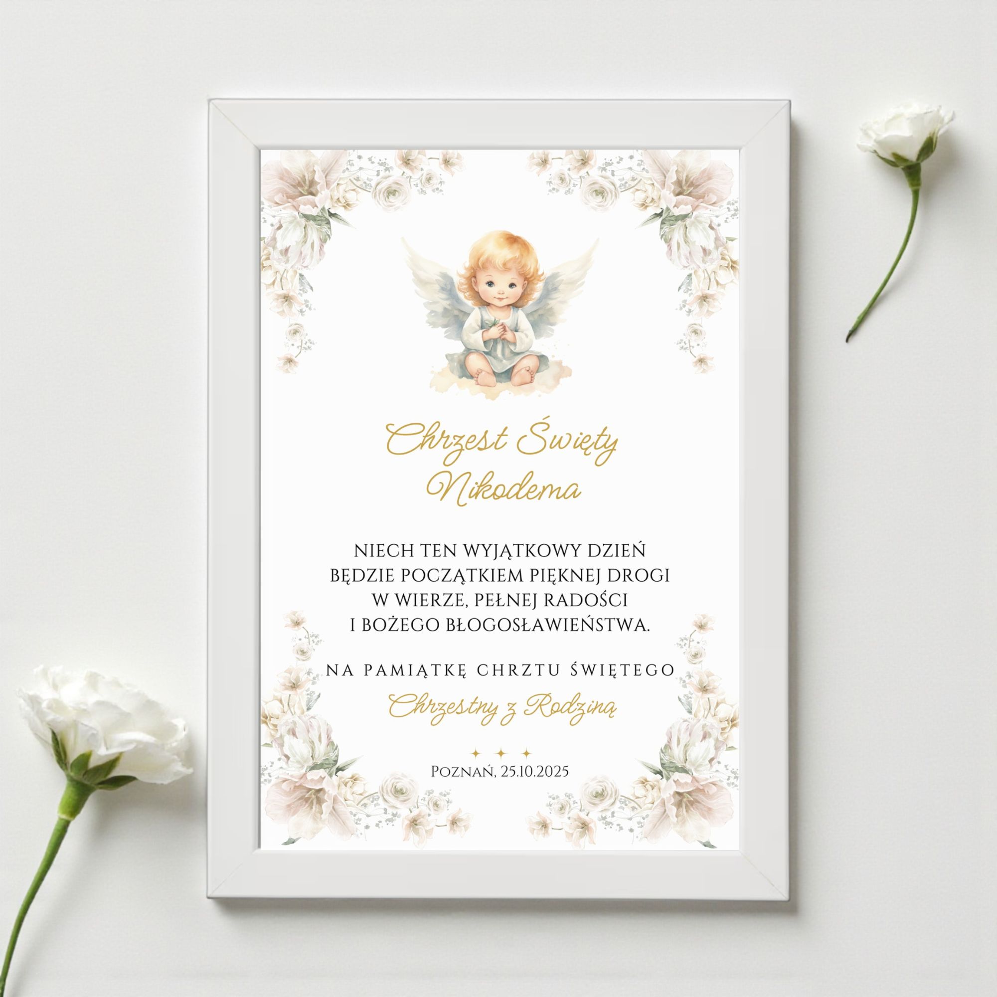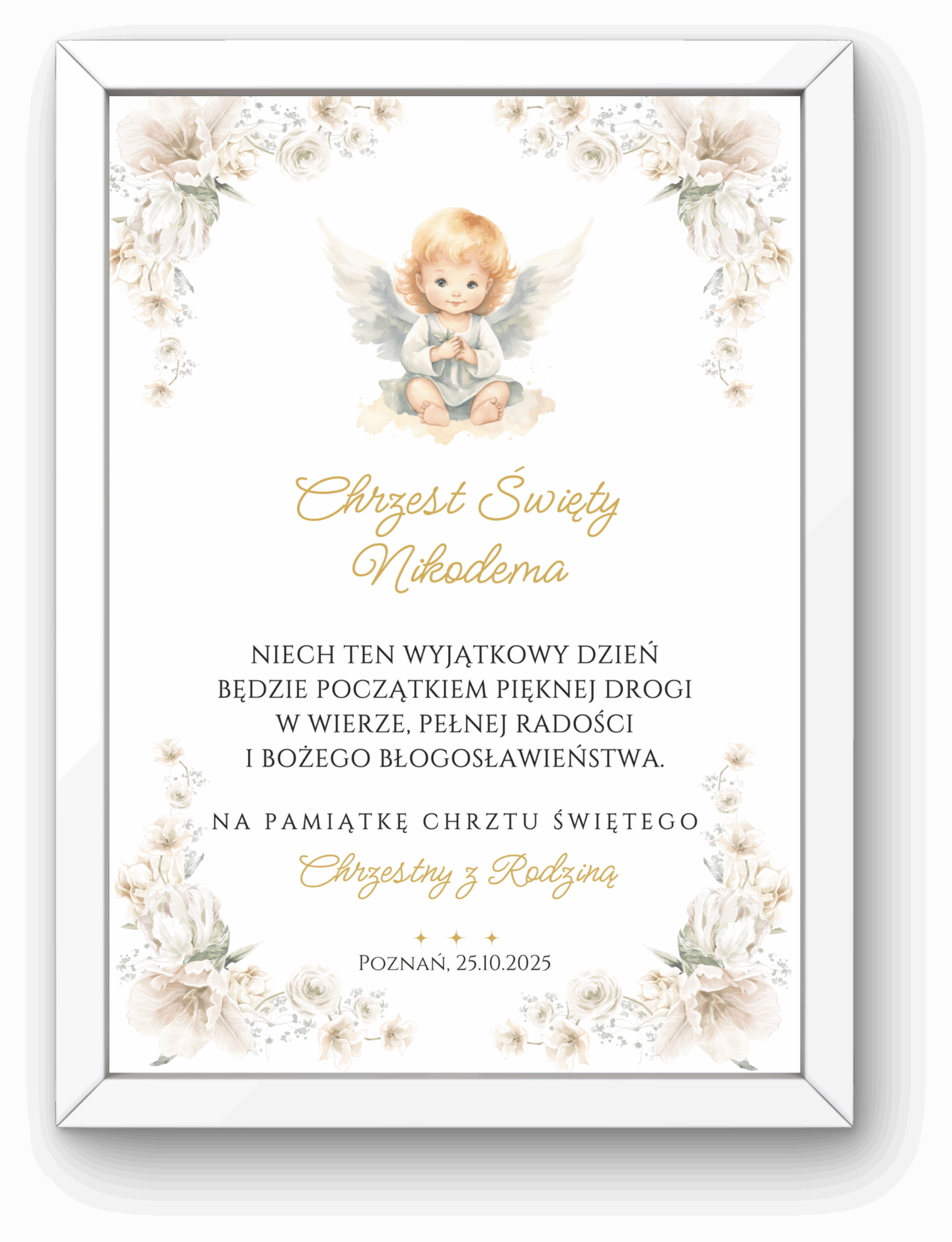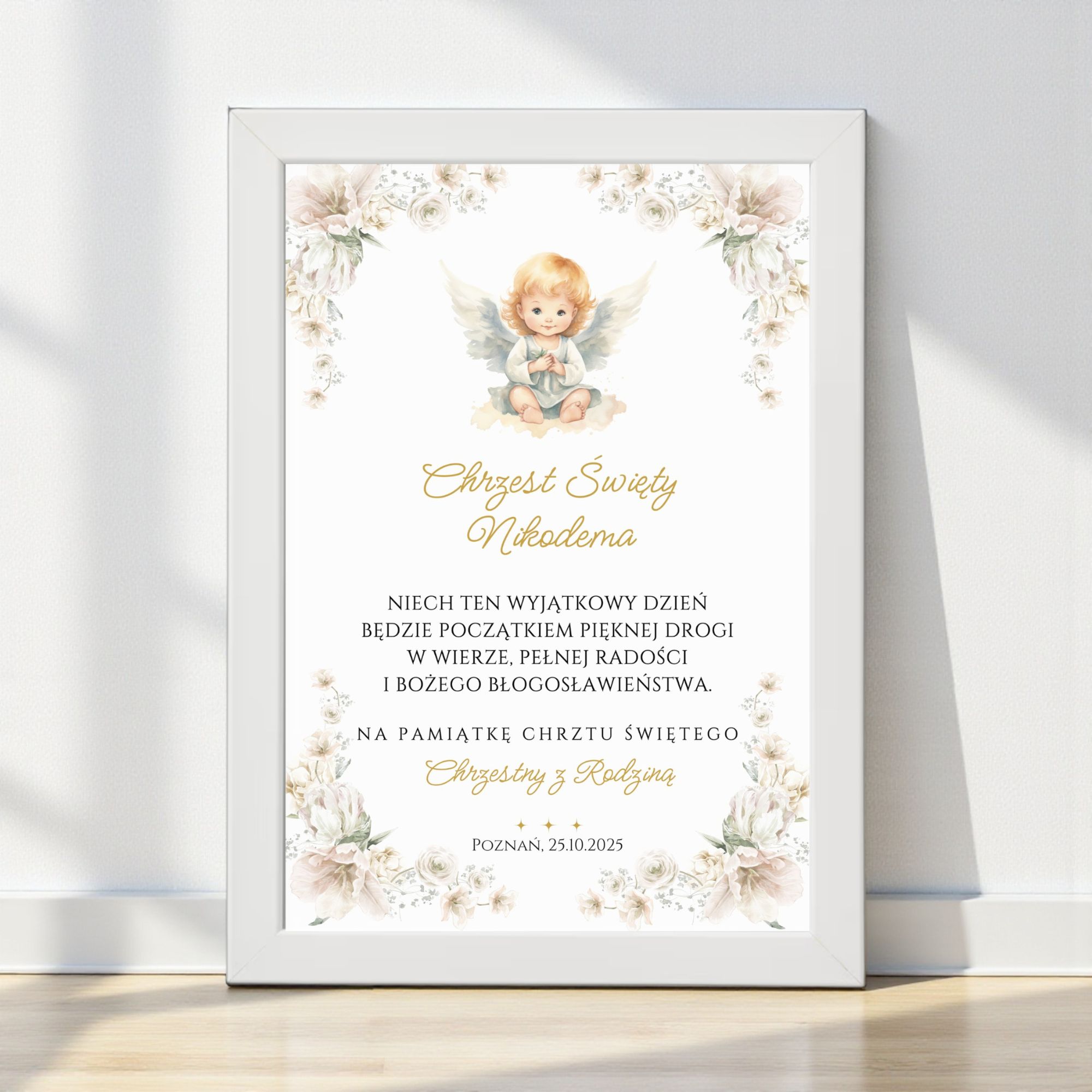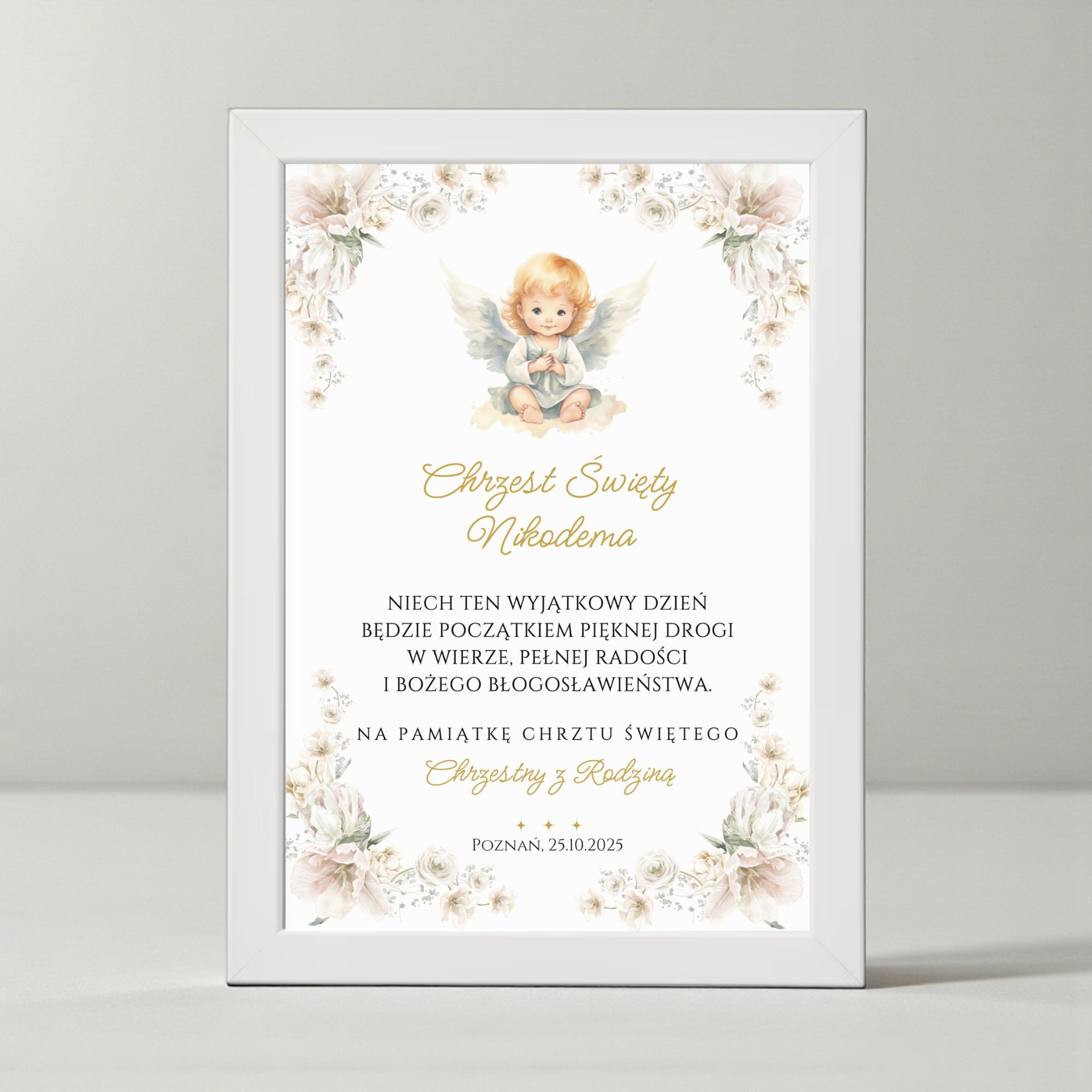 Pamiątka Chrztu Świętego A4 + Biała Ramka Ikea Fiskbo