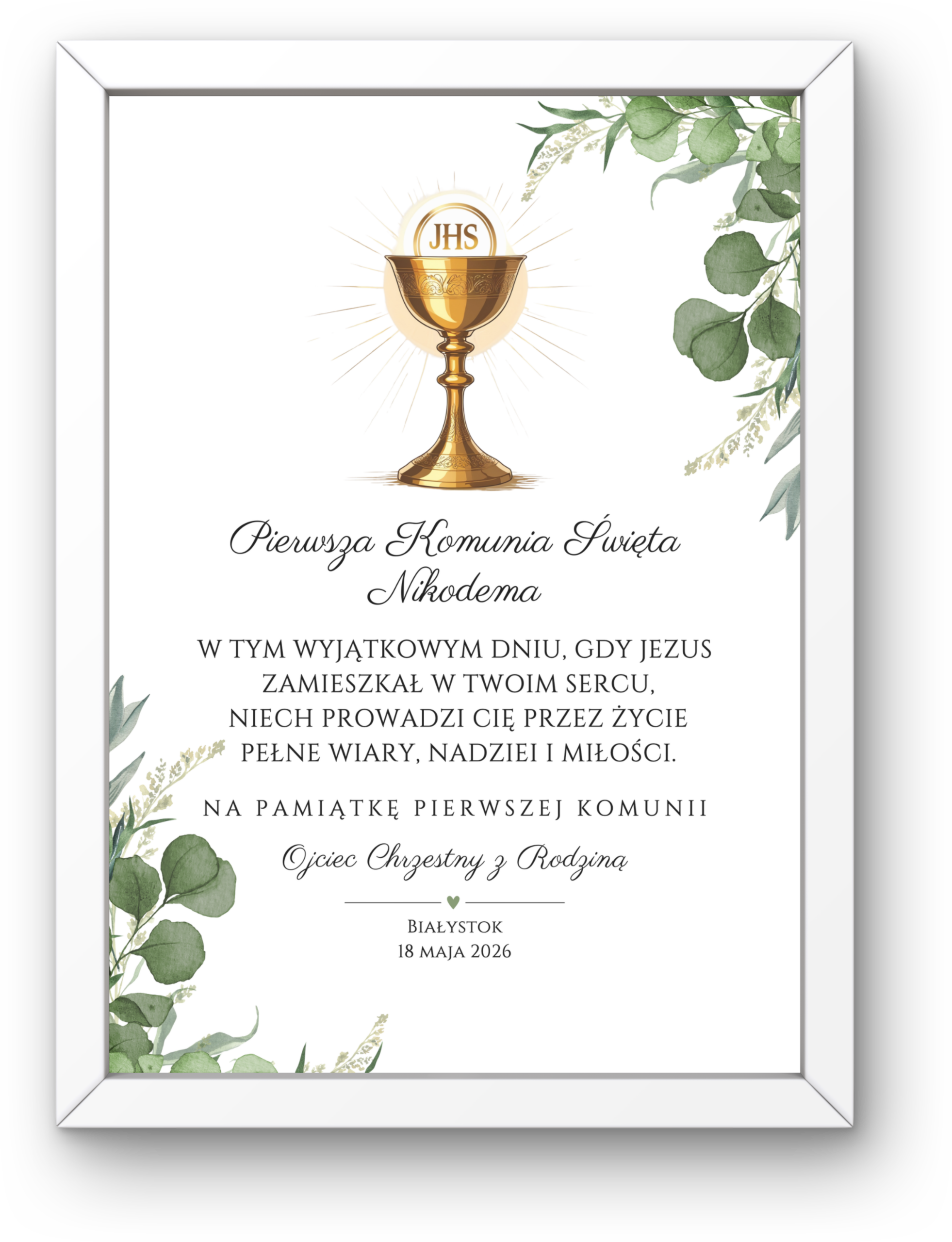 ✅ Pełna personalizacja – imię dziecka, podpis, data i miejscowość uroczystości oraz możliwość dodania własnego tekstu