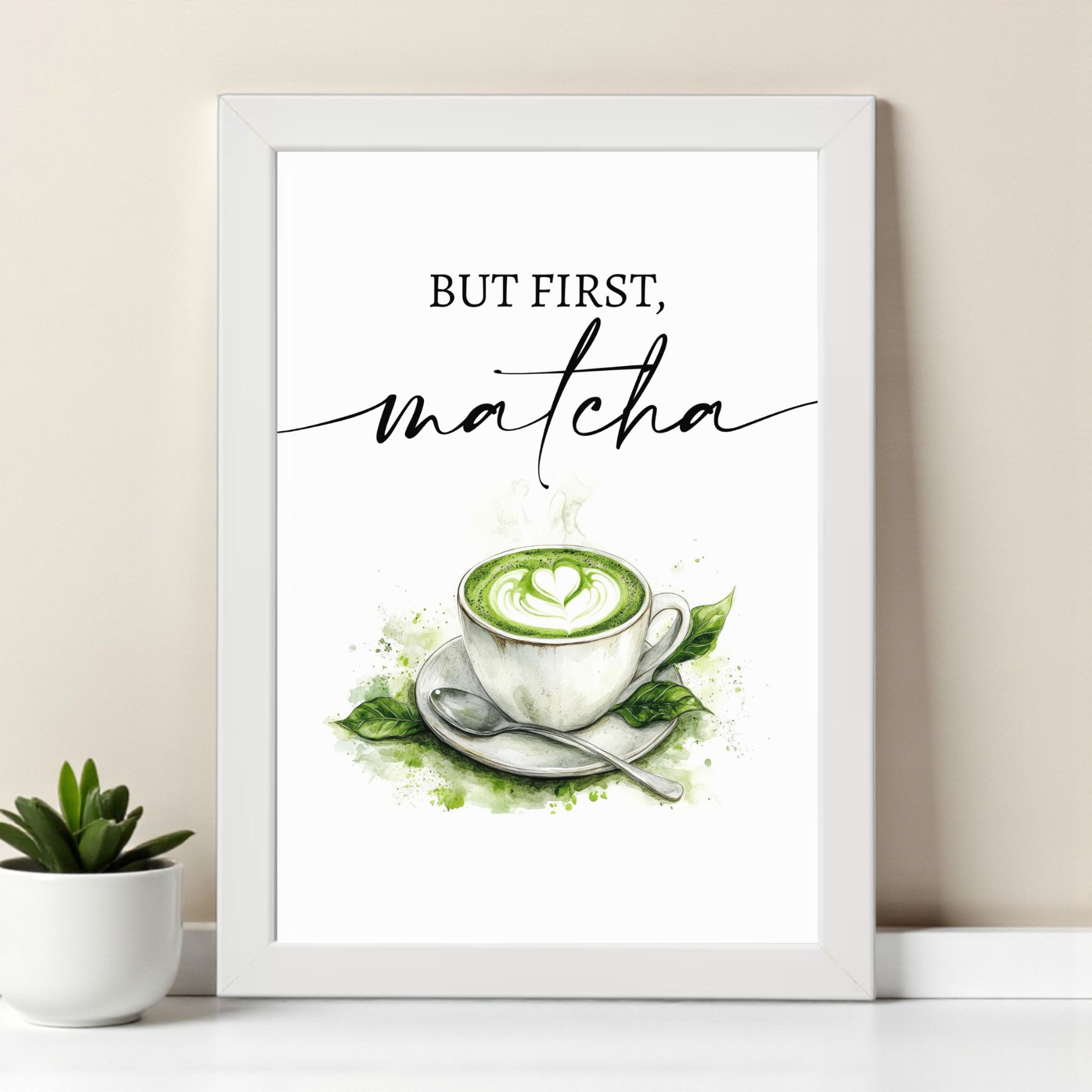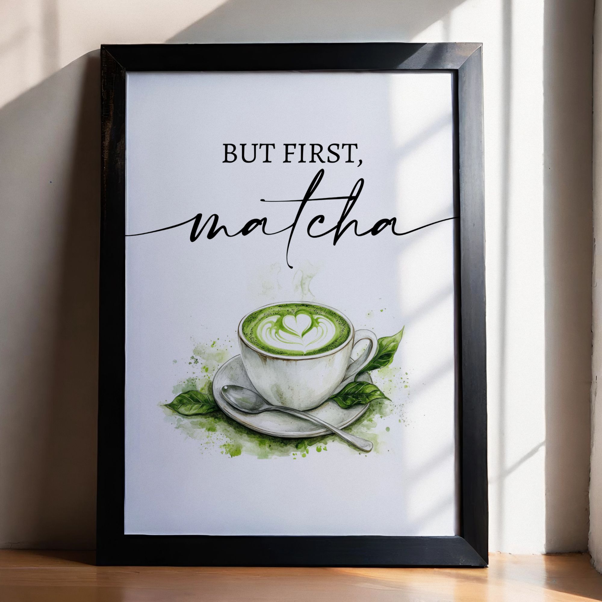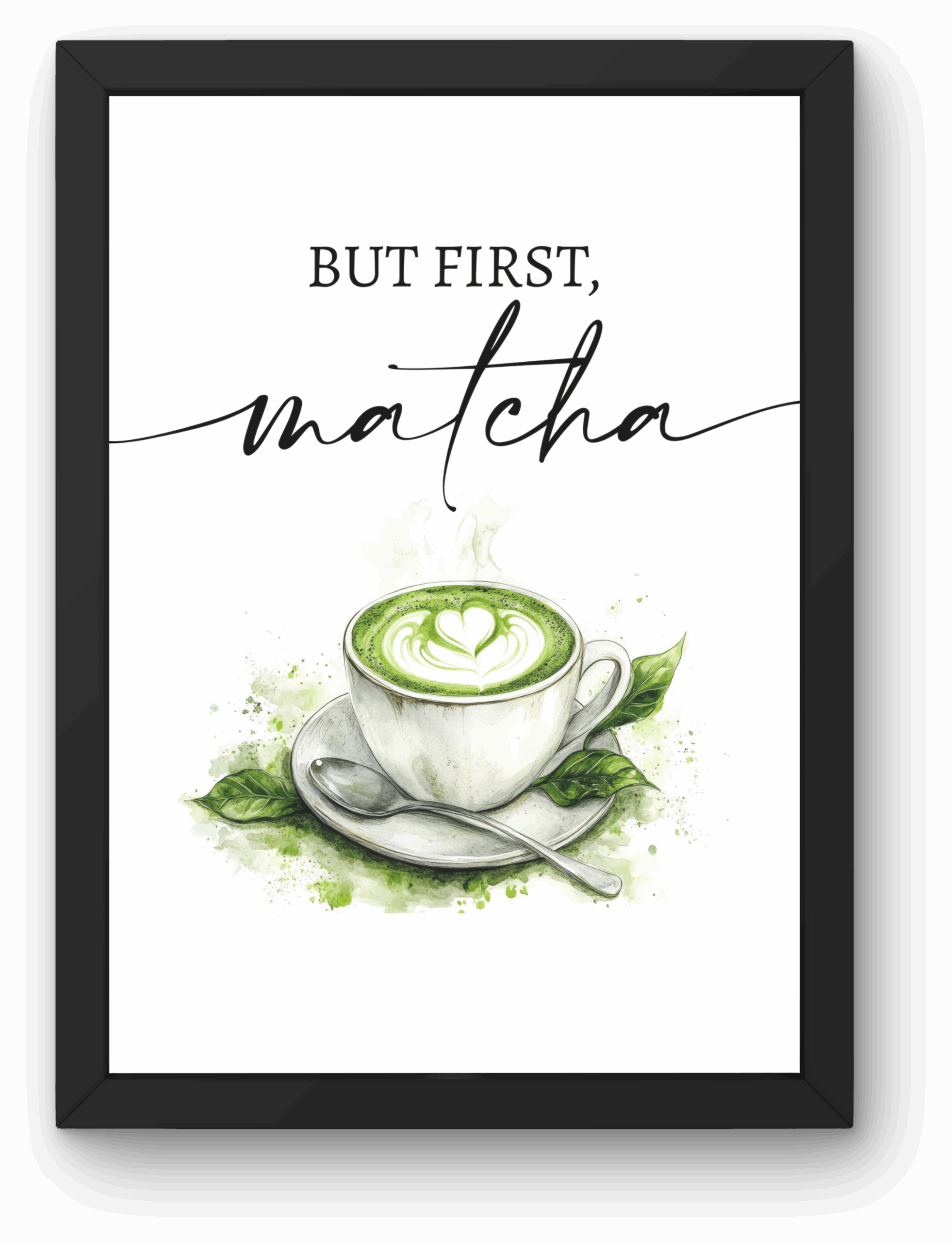 Plakat „But First, Matcha” A4 + Ramka do Wyboru