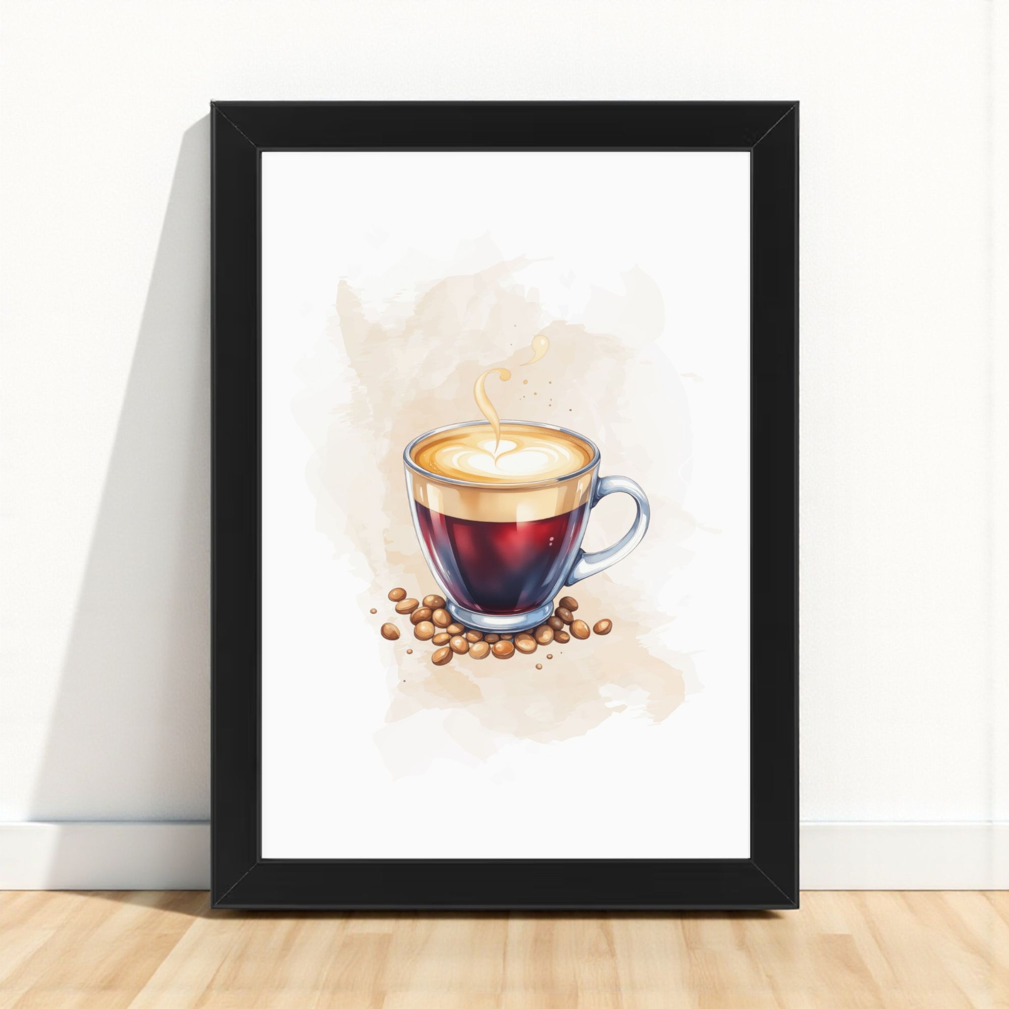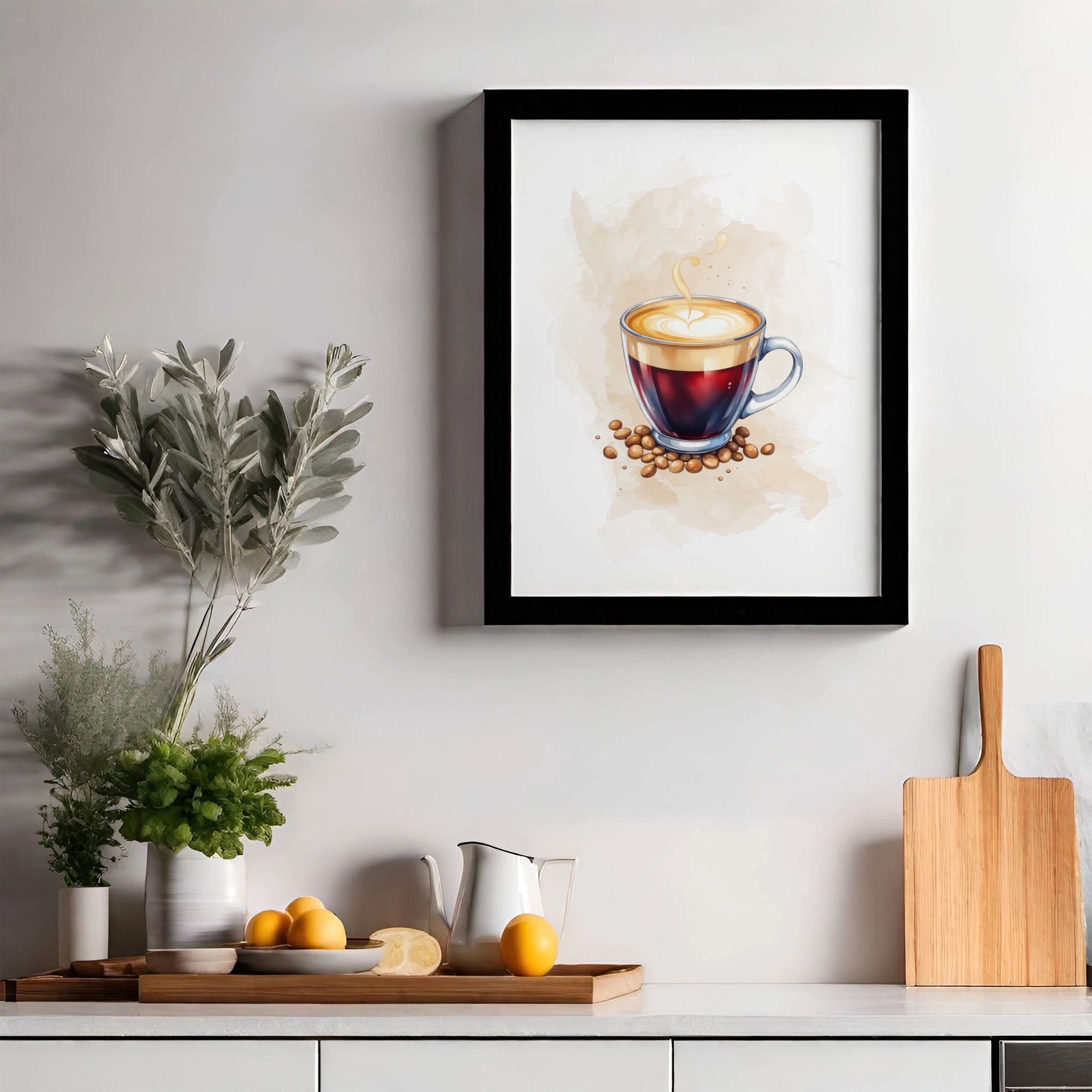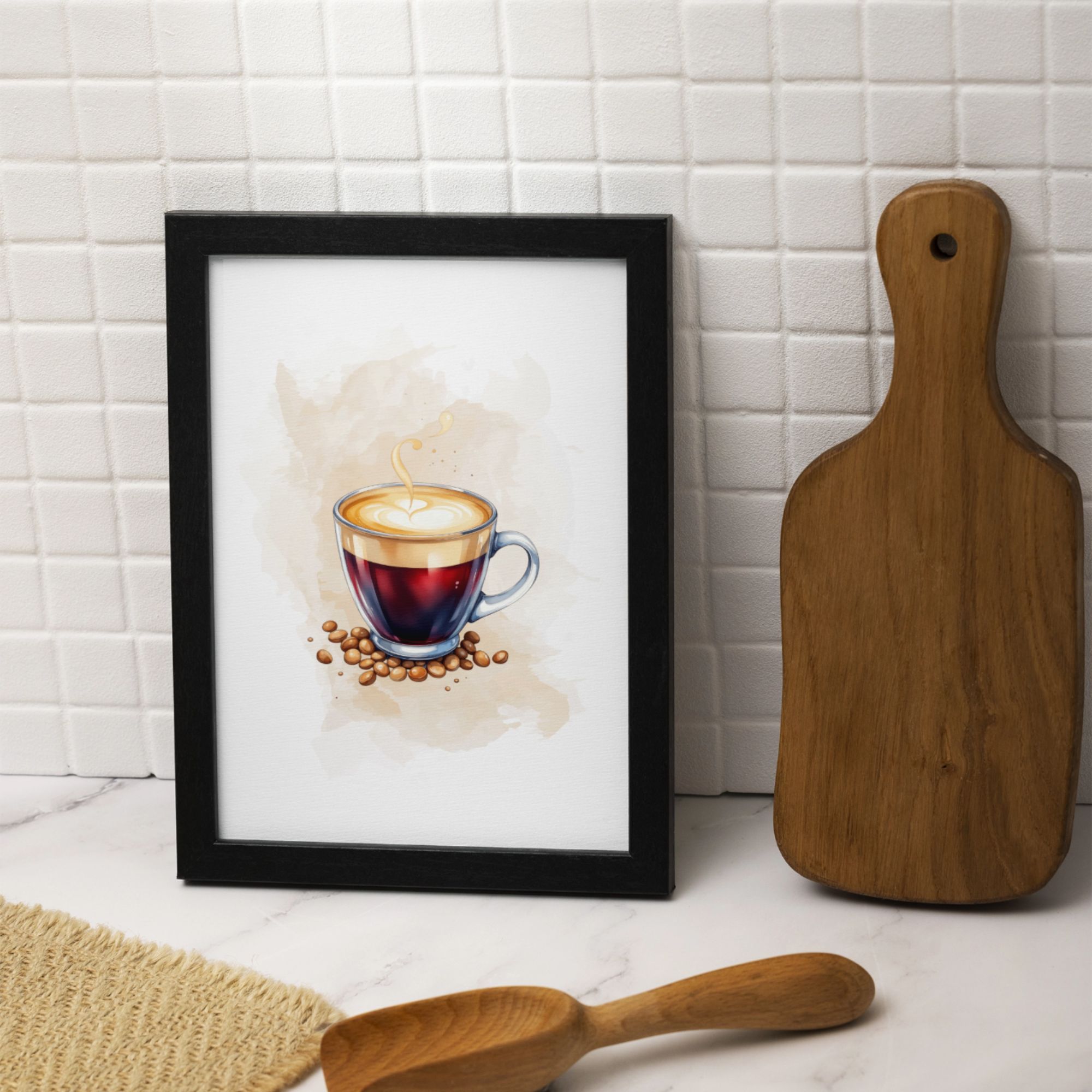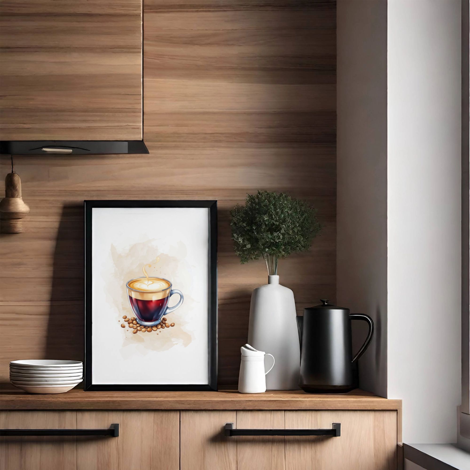 Elegancki plakat z ilustracją filiżanki kawy ozdobionej mlecznym sercem to idealny dodatek dla każdego miłośnika kawy. Delikatna, akwarelowa stylistyka sprawia, że plakat pięknie wpisuje się w nowoczesne, skandynawskie i minimalistyczne wnętrza — dodając im przytulnego klimatu i aromatycznej energii.