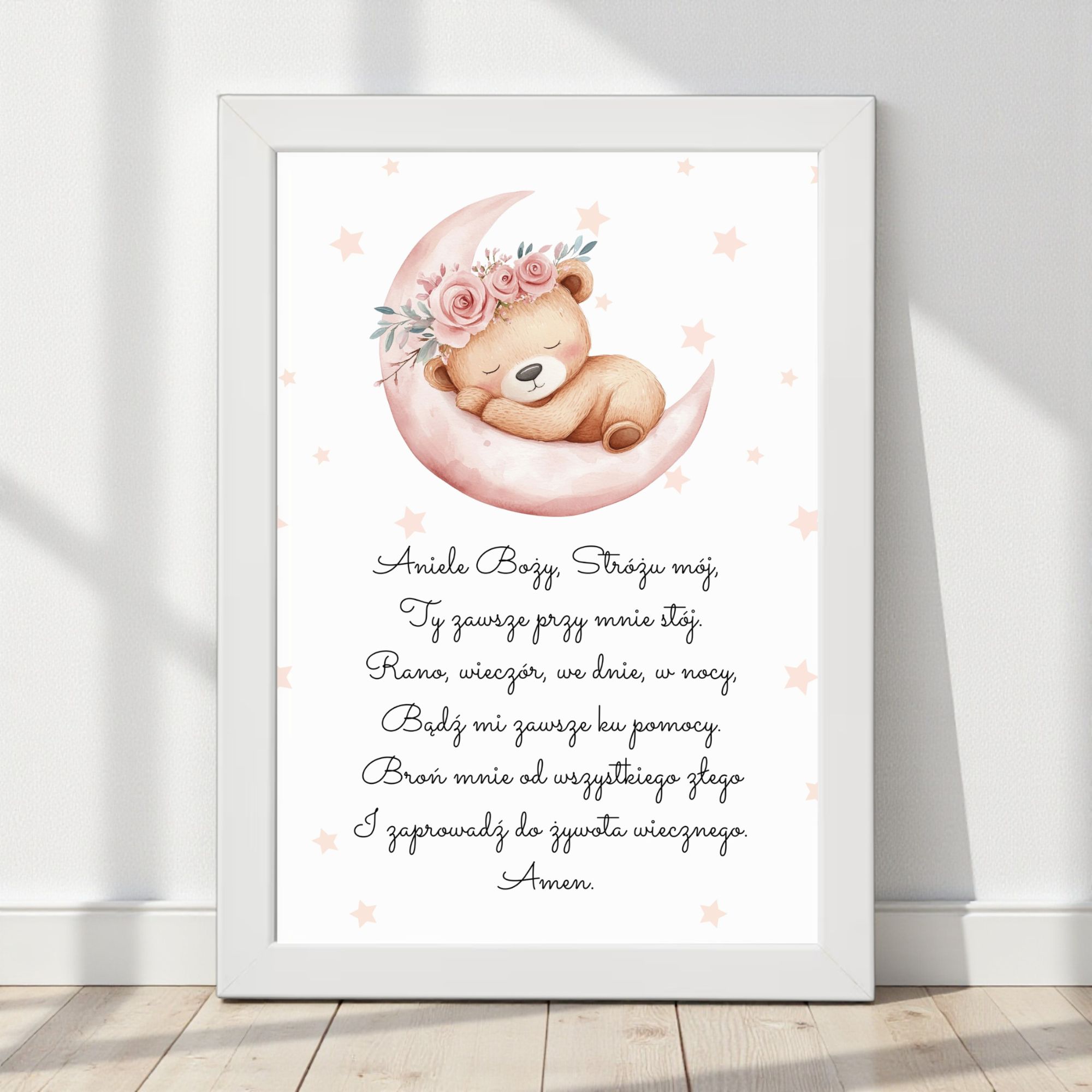 Napisz pierwszą opinię o „Plakat z Modlitwą „Aniele Boży” A4 w Ramce – Miś na Różowym Księżycu”
