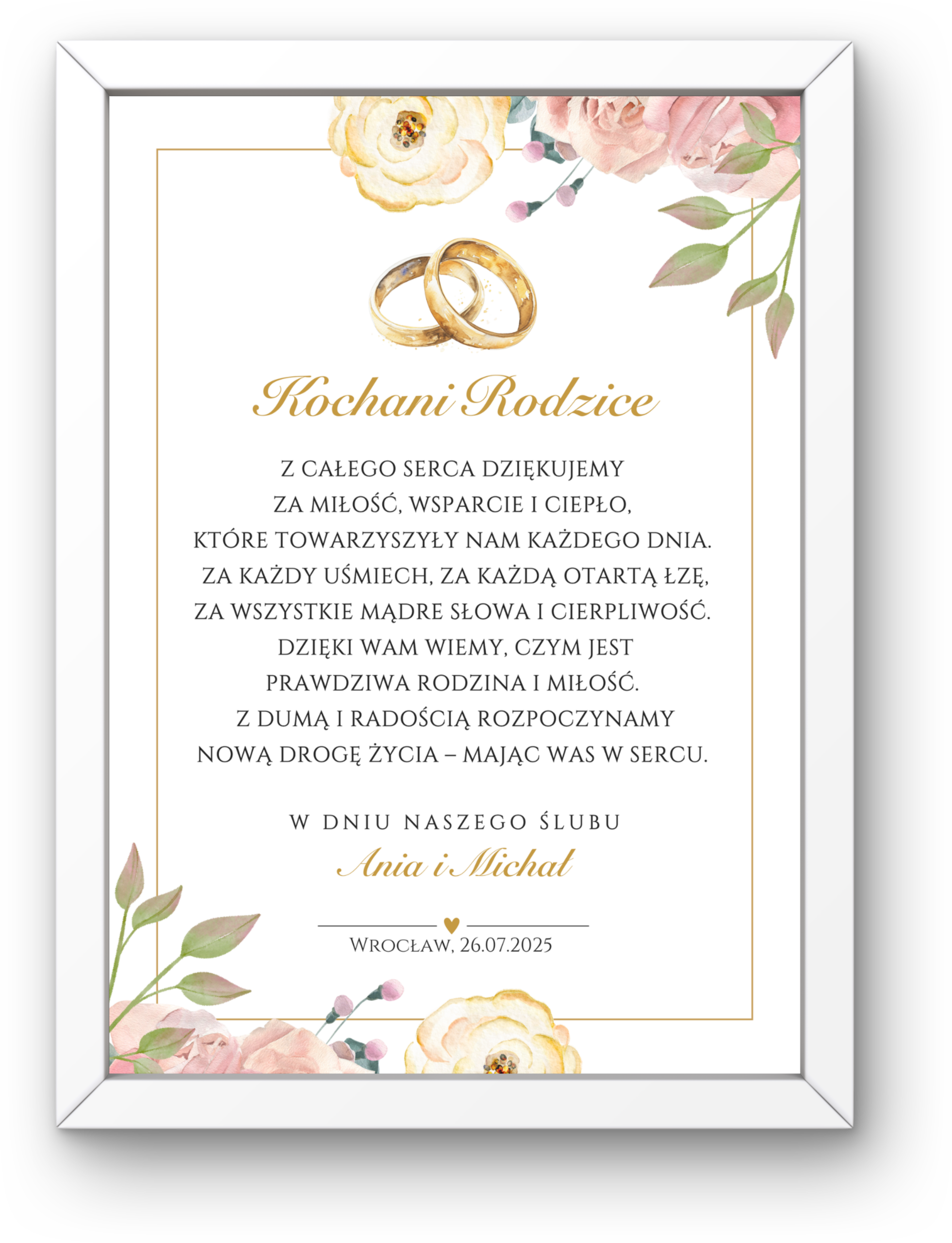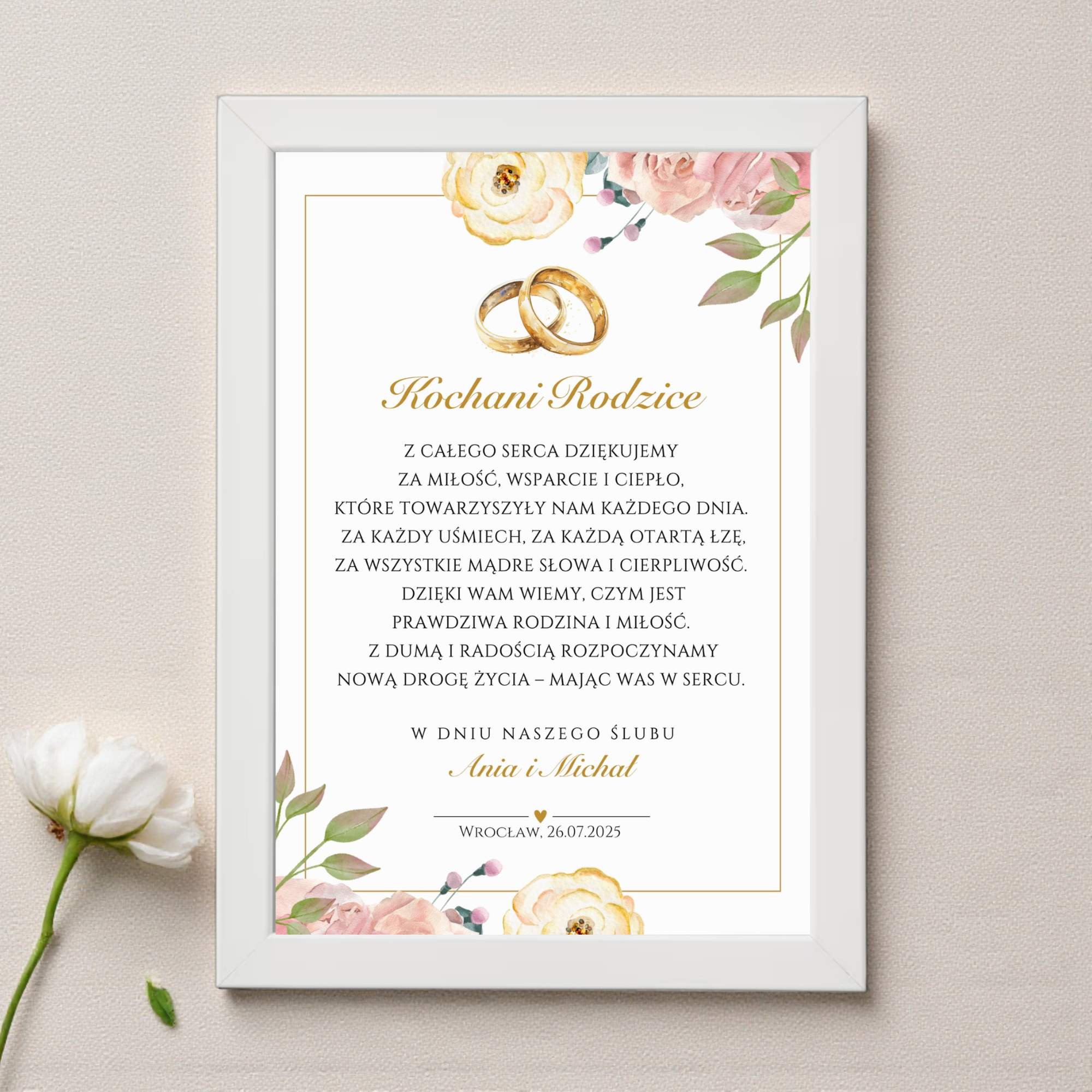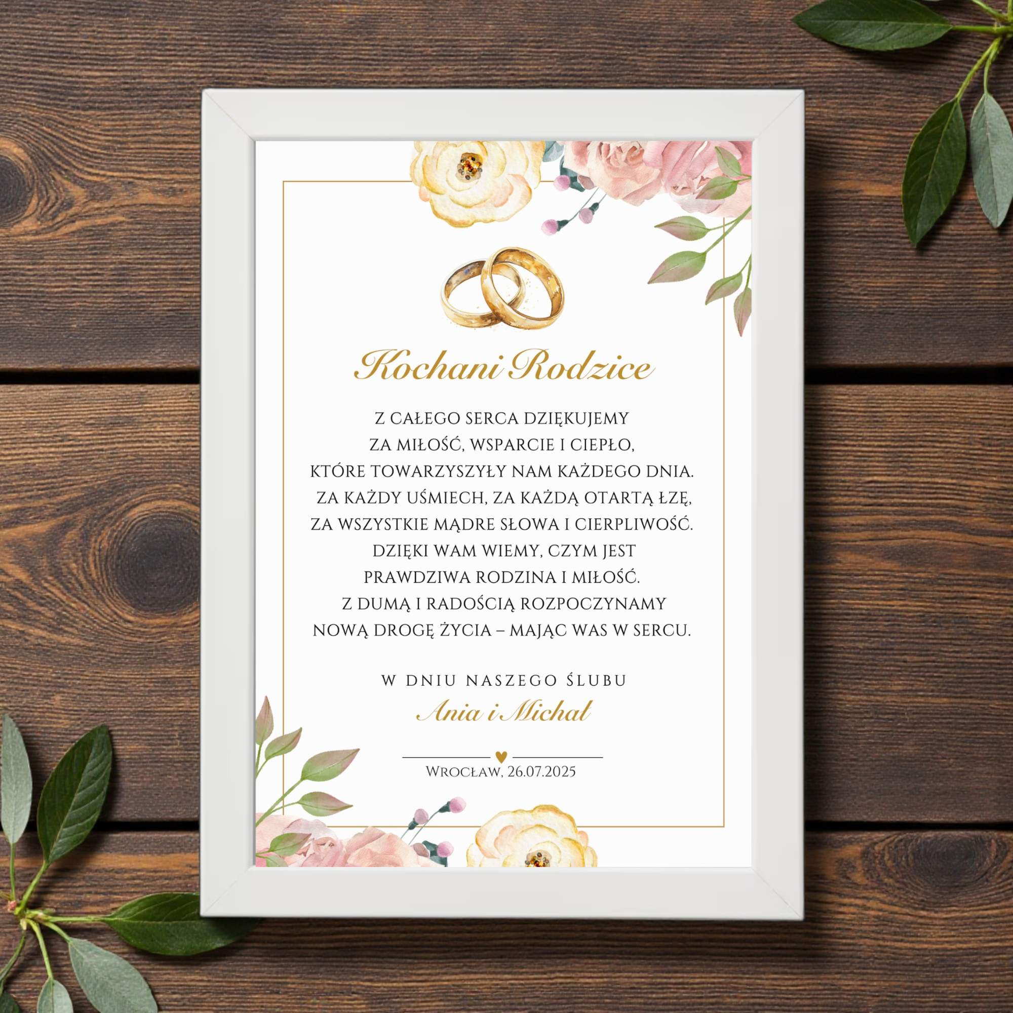 Wyjątkowy prezent ślubny – podziękowanie dla rodziców, dziadków i bliskich osób w eleganckiej ramce