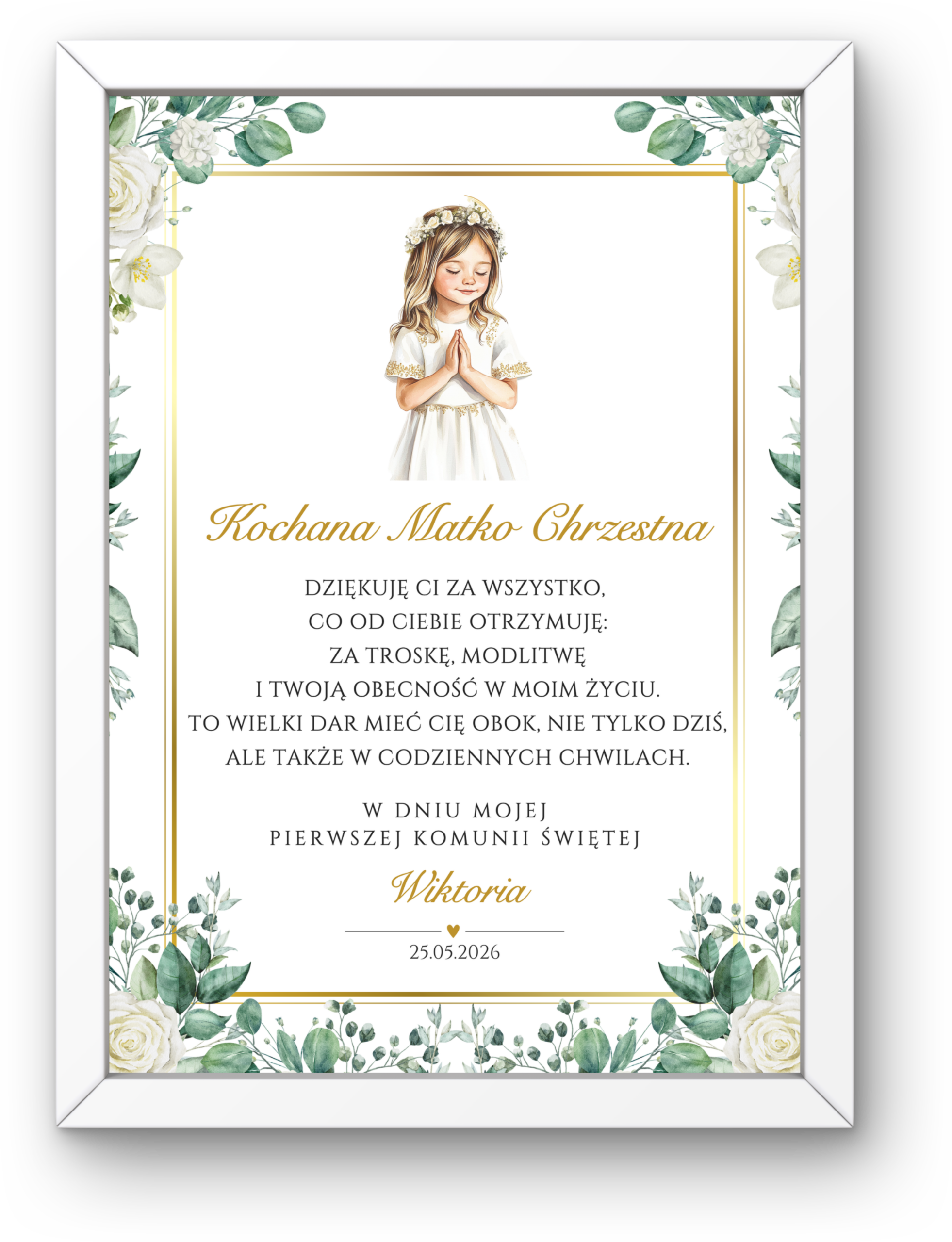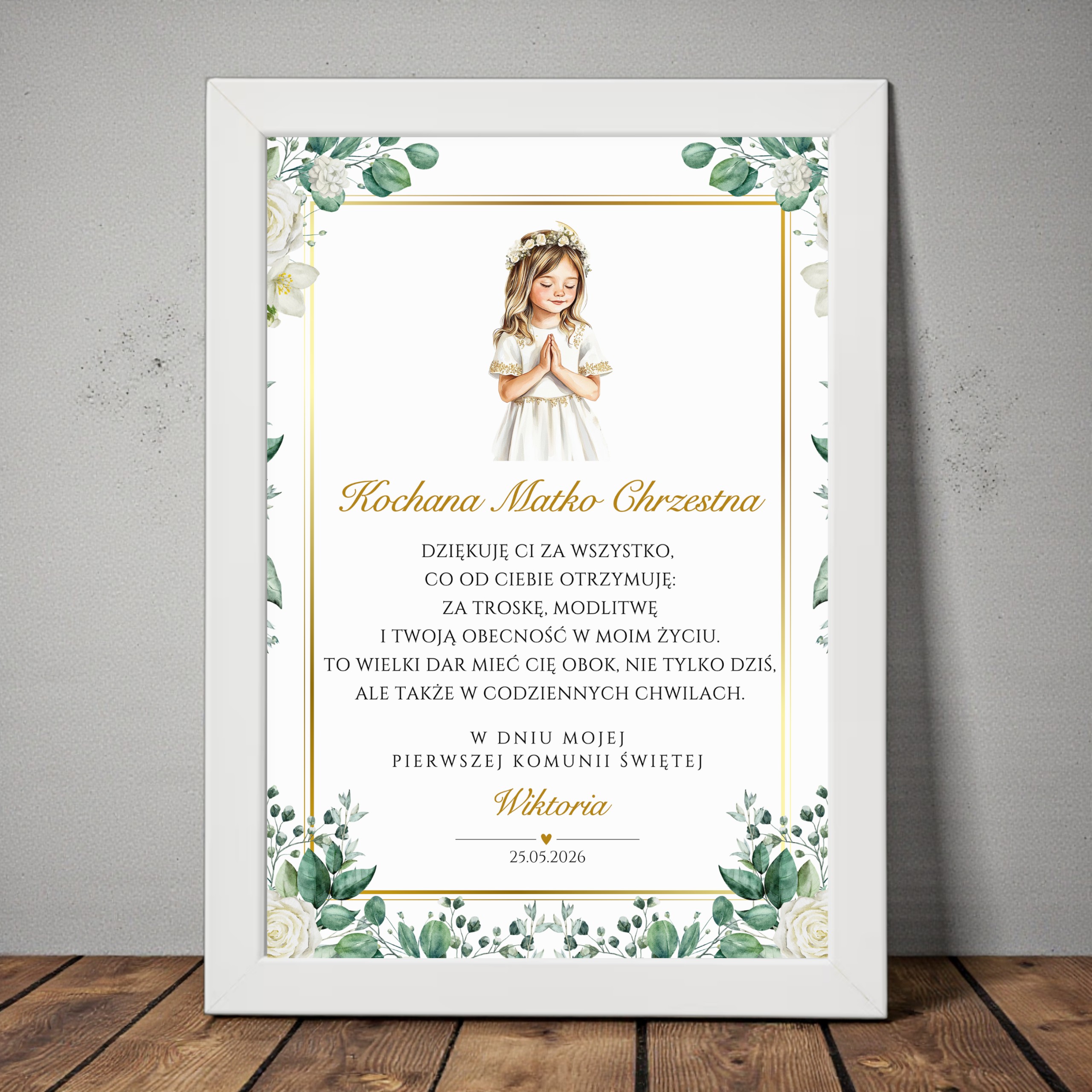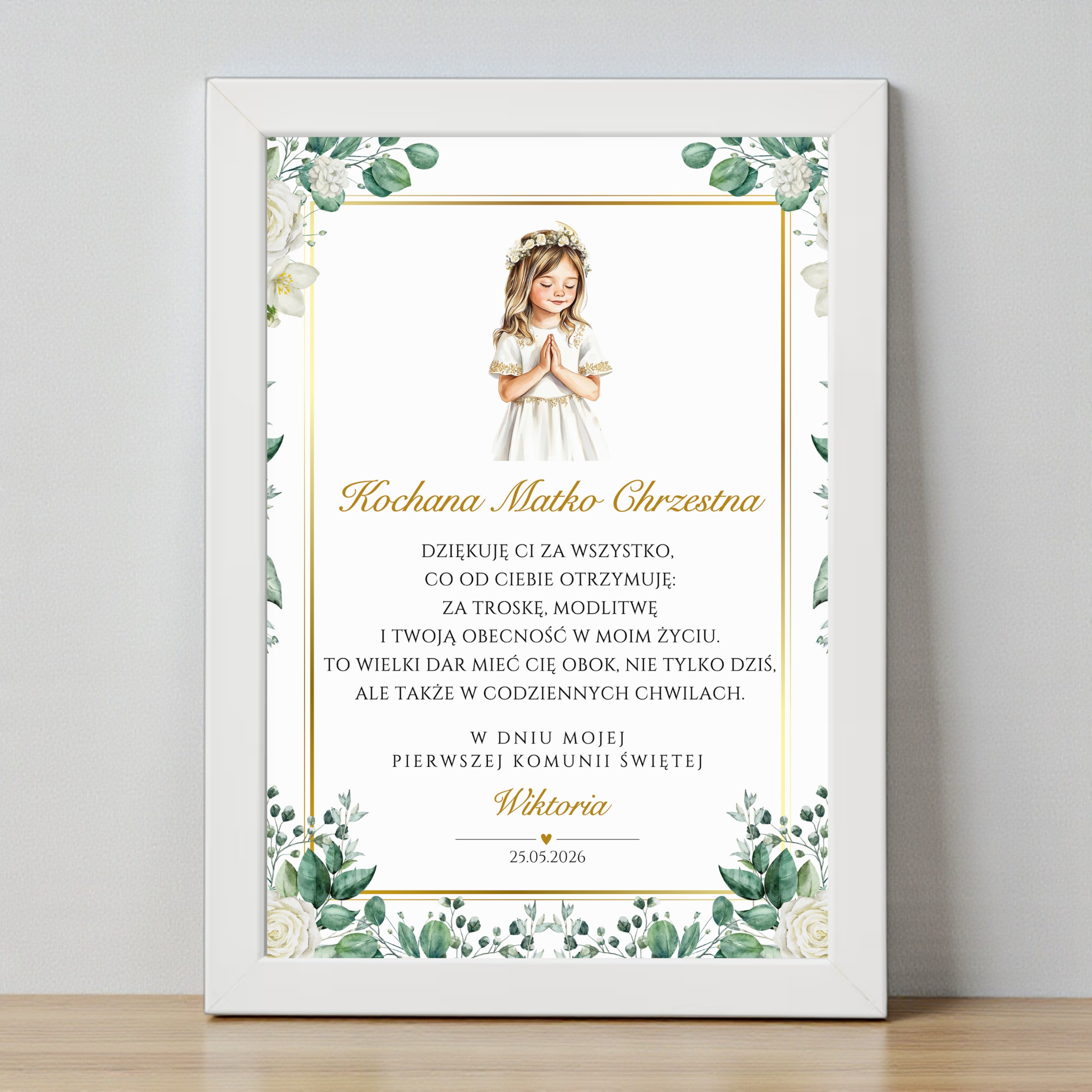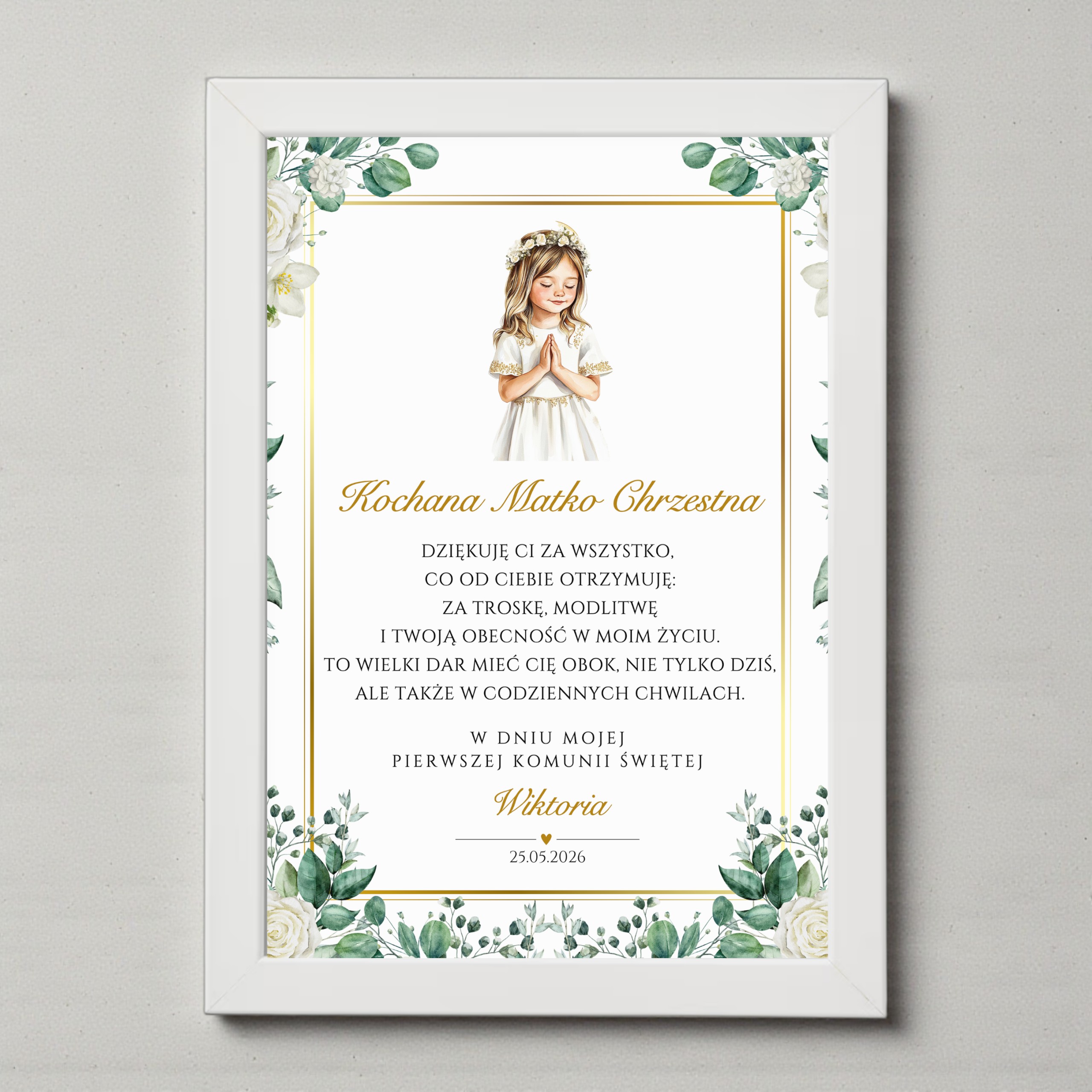 ✨ Pełna personalizacja – nagłówek, imię dziecka oraz data Komunii (opcjonalnie także miejscowość)
